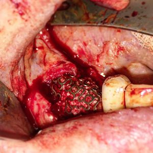 These are often used to prepare the jaws for dental implants in the near future 😬🔧😷Once a full thickness mucoperiosteal flap is raised, bone graft is placed and secured with porous titanium meshwork. The mesh is generally secured with mini-screws into the jaw . A collagen membrane then protects the graft while the flap is then closed and sutured in place 😵