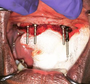 Four implants being prepared on the maxilla for a spankin' new denture ππππ΄Β