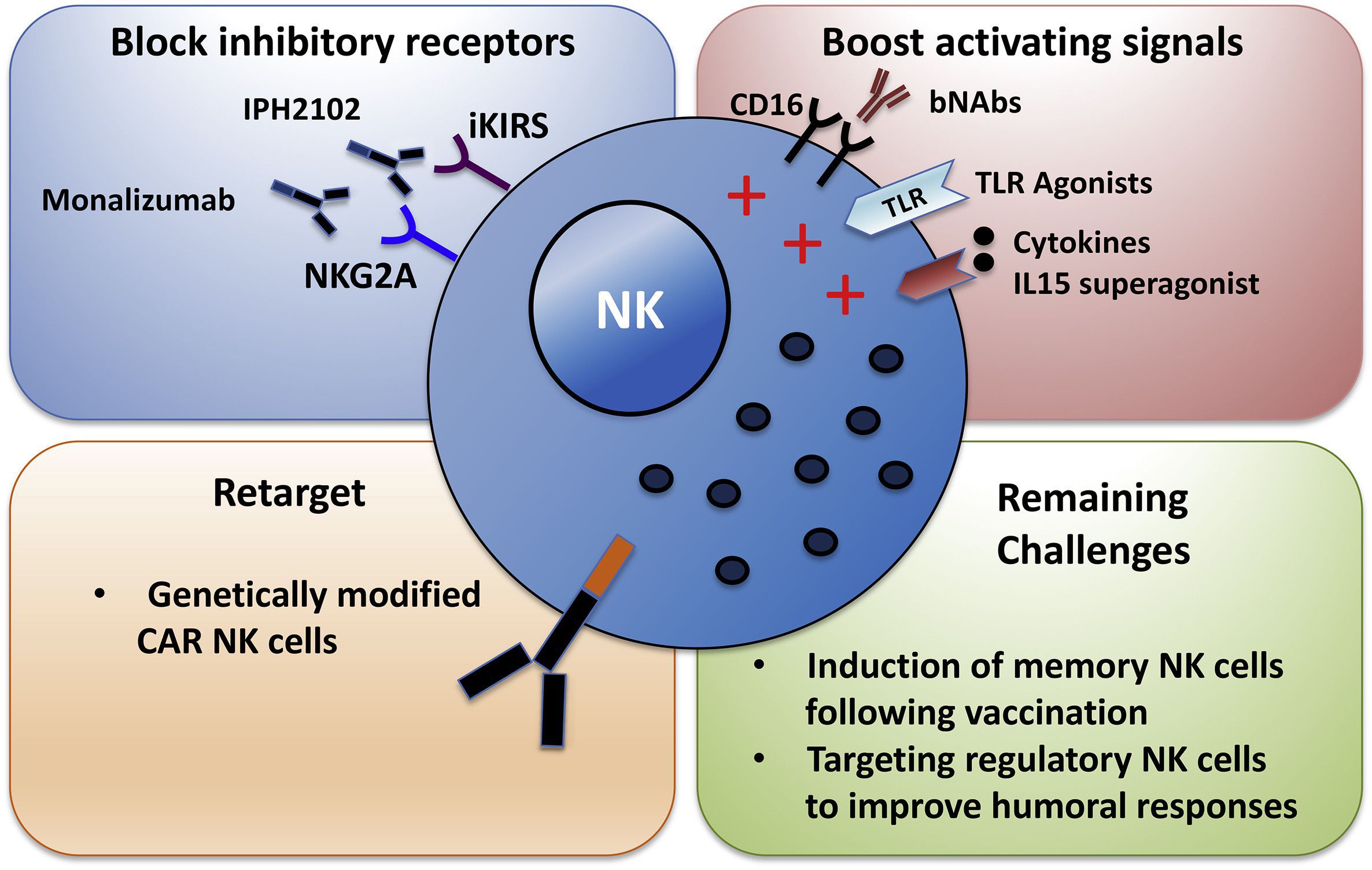 Natural killer (NK) cells play a key role in antiviral and tumour immunity. In the setting of HIV infection, accumulating evidence implicates NK cells as critical contributors to immune control of HIV. In particular, indirect NK cell-mediated antibody-dependent cellular cytotoxicity (ADCC) has been linked to vaccine-induced protective immunity against HIV infection and phenotypes of viral control.                  NK cells recognise stress signals, cancer transformation or infection with immediate effector function achieved via expression of a wide array of receptors and integration of finely attuned signals. In addition to cytotoxic elimination of target cells, NK cells are potent producers of cytokines and chemokines and can promote or suppress adaptive and innate immune responses.