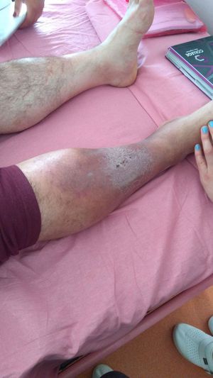 Male patient, 50, came to the hospital with swelling and pain in the right leg. Local temperature was increased.