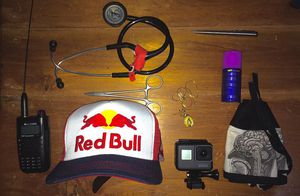 1. Radio receiver, to contact other districts for surgical cases selection 2. redbull for an extra wings 3. gopro action cam for surgical footage or any adventurous moments 4. Customized surgeon cap 5. Mosquito repellent if you want to keep your spleen still in ribs cage 6. Miraculous medal of Mother Mary 7. Surgical kit, at least you can stitch something 8. 3mlittmann stethoscope just for accessories since surgeon don't need that the most 9. Best ballpoint for medical record or surgery report