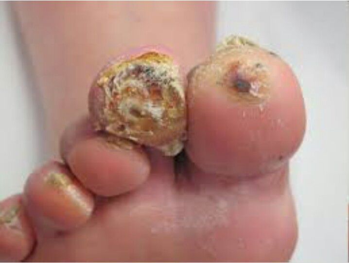 A diabetic foot ulcer is an open sore or wound that occurs in approximately 15 percent of patients with diabetes and is commonly located on the bottom of the foot. Of those who develop a foot ulcer, 6 percent will be hospitalized due to infection or other ulcer-related complication. People who use insulin are at higher risk of developing a foot ulcer, as are patients with diabetes-related kidney, eye, and heart disease. Being overweight and using alcohol and tobacco also play a role in the development of foot ulcers. Pain is usually not a common symptom, but the ulcer is associated with discharge, redness and swelling. To keep the ulcer from becoming infected, keep the glucose lever under normal limits, keep it cleaned and bandaged and clean the wound daily. Appropriate wound management includes the use of dressings and topically-applied medications.