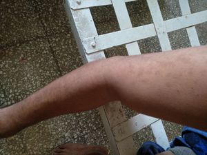 Patient suffering since the age of 2 years. Now he is 19 years old. First rashes and then swelling. Fluid accumulation in the wound. After healing, it gaves a black spot.