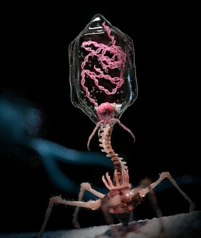 A bacteriophage is a type of virus that infects bacteria. They kill the bacterias by making them burst or lyse. This happens when the virus binds to the bacteria and reproduces inside it. They are directly harmless to humans and are currently used in Phage therapy to treat pathogenic bacterial infections. Image by: https://www.instagram.com/p/CN4K-xcn1Af/?utm_medium=copy_link