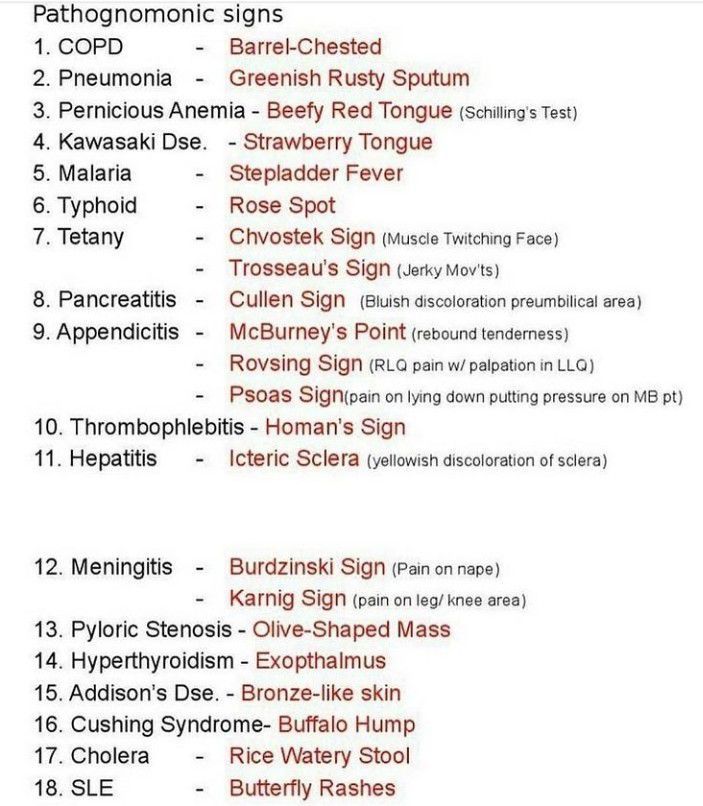 Common Pathognomomic signs