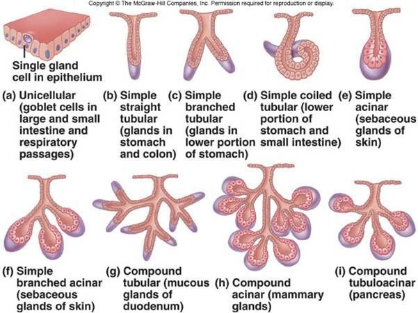 Types of exocrine glands with their locations