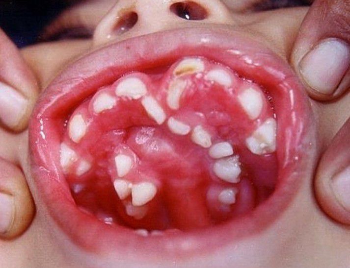 Hyperdontia is a condition of having supernumerary teeth for having extra number of teeth in addition to 32 normal teeth in permenant and 220 in primary dentition . This condition is quite rare and usually only results in one extra tooth. However multiple supernumerary teeth are possible too. This disorder usually occurs in combination with other disorders or syndromes, such as a cleft palate, Gardner’s Syndrome, or cleidocranial dysplasia. Hyperdontia can cause numerous problems, such as teeth blockage, crowding or displacement. https://www.instagram.com/p/CQo1dVcJAmO/?utm_medium=copy_link