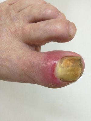 Differential diagnosis: 1. Onychomycosis 2. Paronychia 3. Ingrown toenail 4. Cellulitis 5. Psoriatic nail disease
