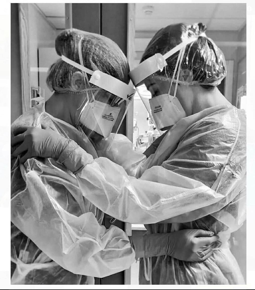 Two nurses holding onto each other for support as they are about to treat coronavirus/Covid-19 patients at Mater Dei Hospital. ๐ฉโโค๏ธโ๐ฉ This photo has been chosen by the World Health Organisation to mark & highlight the sacrifices of medical staff during the current pandemic. #medicalstaff #pandemic2020 #coronavirus #healthcareworkers #healthcareheroes #love #healthcare #covid_19 #covid
