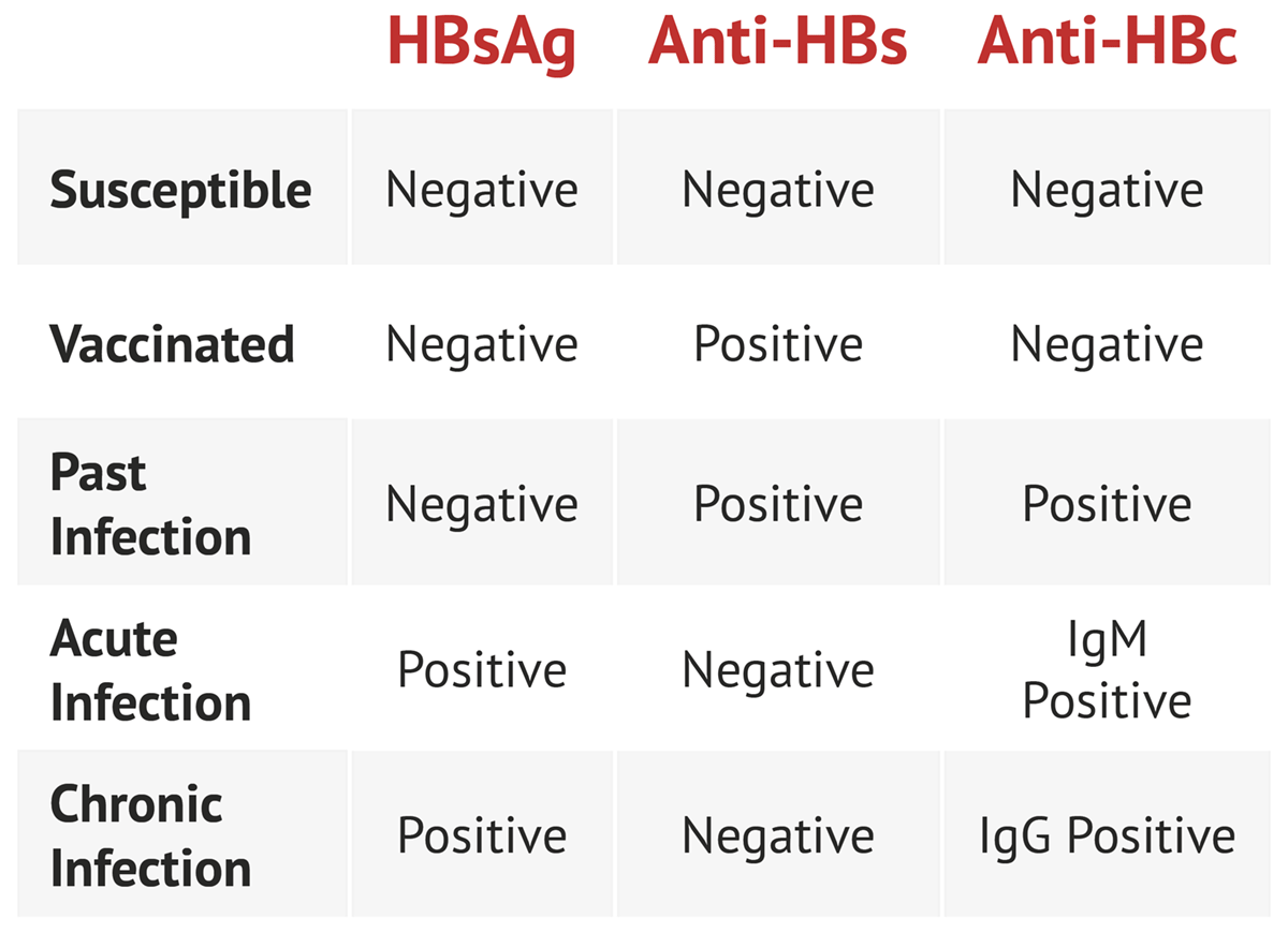 Hepatitis B is one of the most common causes of hepatocellular carcinoma. The acute infection can be asymptomatic. However, the infection can be chronic. Number of antibodies and antigens are detected in the serum in case of hepatitis B. Taking into consideration the titers and the type of antigen / antibody, acute and chronic infections as well as the vaccination status can be distinguished. Reference: https://medschool.co/test-findings/hepatitis-b-serology