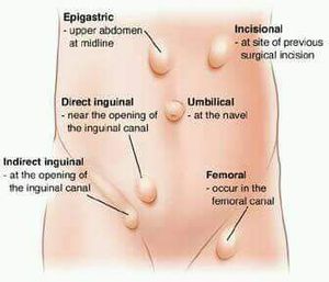 Frequent types of hernia