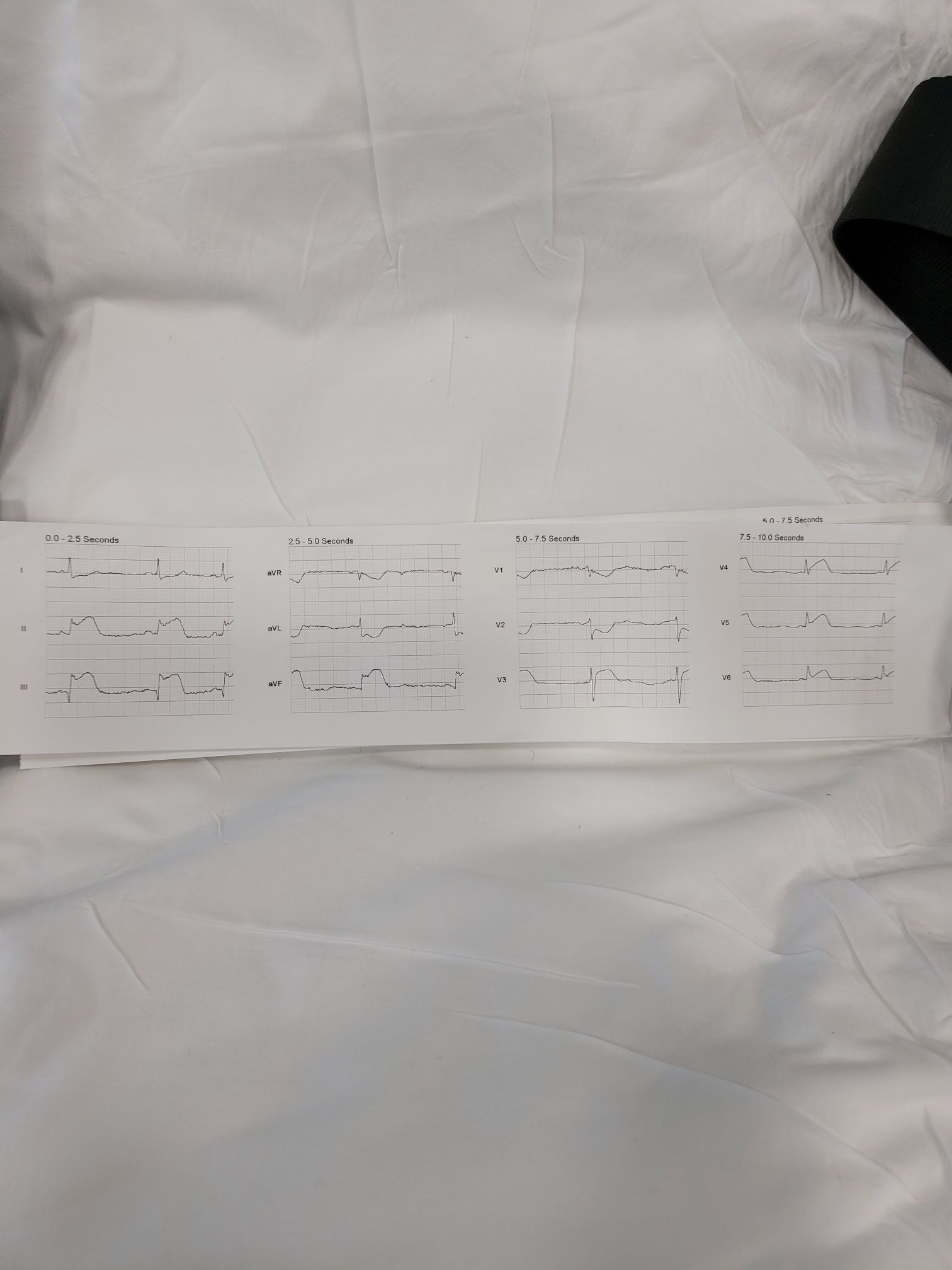 Need longer strip of a single lead. Definitely ST elevated MI, but lead 1 Wenckebach?