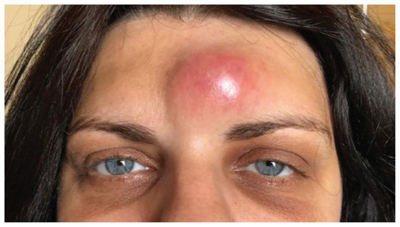 Pott puffy tumor is a non-cancerous complication of acute sinusitis. It is essentially a subgaleal collection, subperiosteal abscess, and bone infection. It is usually associated with frontal sinus; however, mastoid pathology can also give rise to Pott puffy tumor. Other causes of Pott puffy tumor are: - Trauma - Intranasal Cocaine abuse - Methamphetamine abuse - Craniotomy Reference: https://radiopaedia.org/articles/pott-puffy-tumour Image via: https://www.cmaj.ca/content/191/6/E165