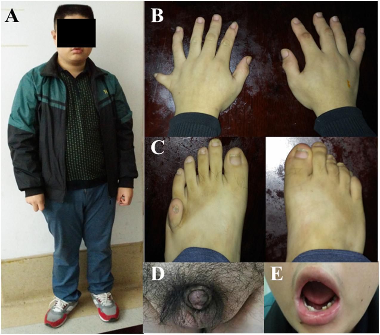 Laurence-Moon syndrome is synonymous with adipogenital-retinitis pigmentosa syndrome. It arises due to mutations in gene PNPLA6. It follows an autosomal recessive pattern. The signs and symptoms of Laurence-Moon syndrome are: - Structural abnormalities of limbs - Postaxial polydactyly - Flat arch of foot - Taurodontism - Wide-based stance - Ataxia - Gradual vision loss - Learning difficulties - Hypothyroidism - Decreased levels of sex hormone - Underdeveloped gonads - Brachycephaly - Arrhythmias Reference: https://rarediseases.org/rare-diseases/laurence-moon-syndrome/ Image via: frontiersin.org/articles/10.3389/fcell.2021.635216/full