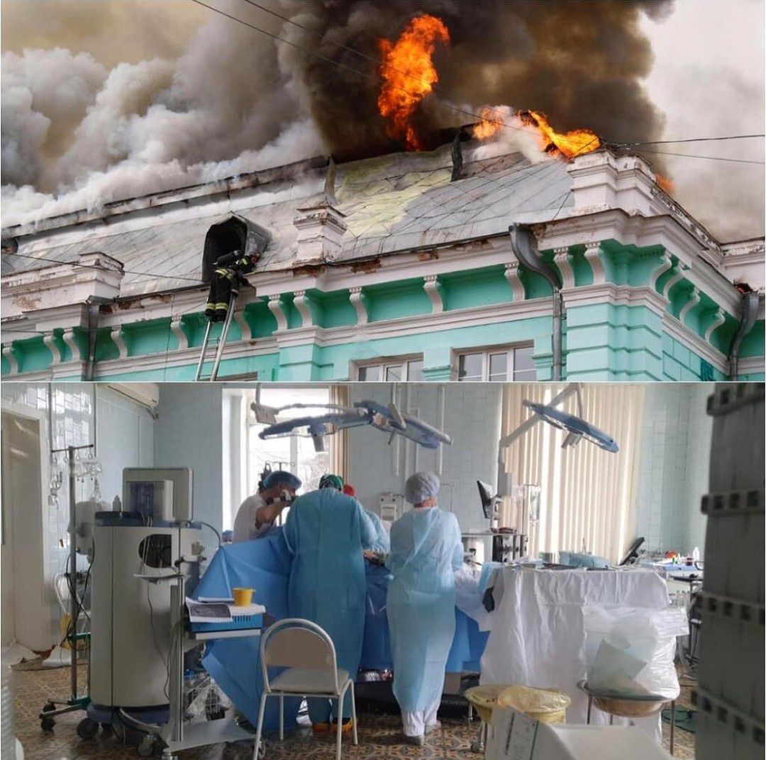 The spirit of real heroes. Russian doctors complete heart surgery during hospital fire!! A team of doctors successfully completed open heart surgery inside a Russian hospital that caught fire last week as firefighters battled the flames from the outside. The wooden roofed building in the far eastern city of Blagoveshchensk caught fire and 60 patients were evacuated as it filled with smoke. But a team of eight doctors performing the operation on the ground floor carried on. "We had to save this person and we did everything," Said the head of the cardio surgery unit in an interview. The surgery continued thanks to an emergency electricity cable run into the ground-floor operating theatre as fans kept the smoke out, all while firefighters ensured smoke did not spread to the room. After the operation, the patient was evacuated from the burning building to another hospital. Russia's emergencies ministry said the hospital was built in 1907 in the tsarist era, and the blaze "spread like lightning through the wooden ceilings". A short circuit is thought to have sparked the fire.