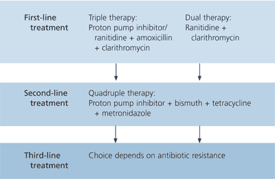 not sure if this is updated; 1) ranitidine is in the process of being removed d/t incidents of stomach cancer 2) an attending said that quad therapy is now preferred from the start because of high resistance to the triple