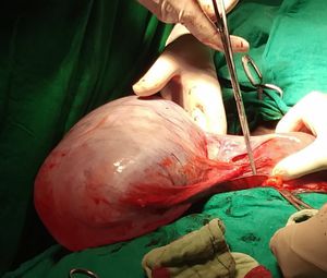 Ovarian cyst of approximately size of 24wks of uterus is removed out from abdomen. This procedure is called ovariectomy and at the same time tubectomy is done