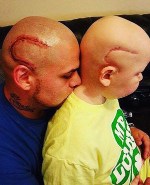 This is truly powerful beyond words. This father has gone to extraordinary lengths to show his love and support for his sick young son by getting a tattoo on his head matching a scar the boy bears from brain surgery. The 8-year-old was diagnosed with an anaplastic astrocytoma, a type of malignant brain tumor, the treatment for which was surgery. However, after the surgery, his father became concerned about how the scar left behind on his son's head from the surgery was affecting his self-confidence. In fact, the little boy told his dad that he felt like a monster with the scar. A fact that simply broke his father's heart. So, to help his son feel normal, he came up with the idea of getting a tattoo on his head to look identical to his son's cancer scar.