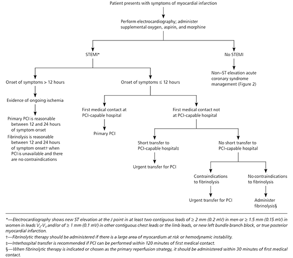 The above provided algorithm gives an overview of the reperfusion protocol in a patient coming with a STEMI according to the ACCF/AHA guidelines.