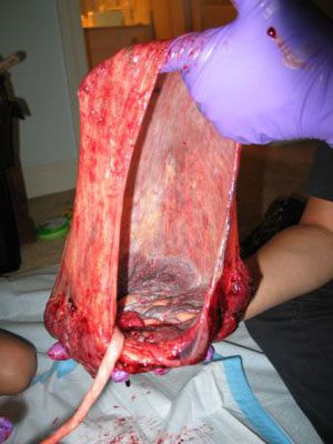 Placental expulsion (also called afterbirth) occurs when the placenta comes out of the birth canal after childbirth. The period from just after the baby is expelled until just after the placenta is expelled is called the third stage of labor.