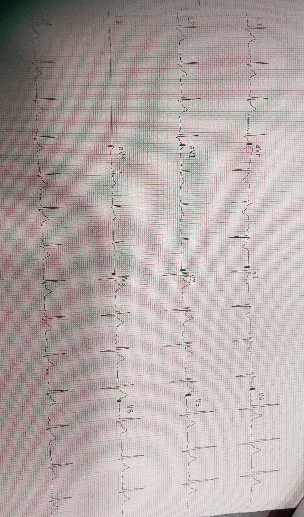 Almost. Patients has some low voltage p waves and Delta waves are present. Agree that lead L3 is off. And low p waves can indicate problems with the atrium which is severe may need a atrial pacemaker. Delta waves means possible probs with electricrical pathways of the heart. Such as WPF