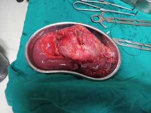 A case presented with the abdominal pain on the right lower quadrant along with difficulty in passing stools since 1 year on examination anemia was present and a mass of about 5×7 cm could be felt in the right upper and lower quadrant and tenderness was also present. This is the picture of the specimen that i took after the surgery what could be the diagnosis and name of the procedure that has been done?