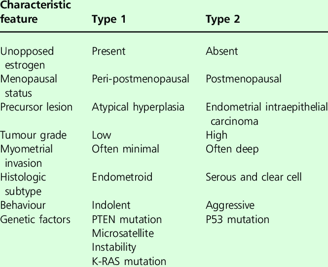 Differences between type 1 and type 2 Endometrial Cancer