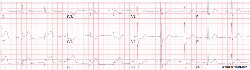 Posterior wall MI ECG finding differ from those that are seen in other typical ST-segment elevation myocardial infarctions. Posterior wall MI frequently coexist with inferior wall MI due to shared blood supply. The acute posterior MI will how the following findings: - ST-segment depression in leads V1-V4 (septal and anterior leads) due to detection of MI backwards as the placement of leads is anteriorly and the MI is present posteriorly. - ST-segment elevation in leads I, II, III and aVF (inferior leads) if presence of coexistent inferior wall MI. Text Reference and Image Source: https://www.healio.com/cardiology/learn-the-heart/ecg-review/ecg-topic-reviews-and-criteria/posterior-wall-mi-review