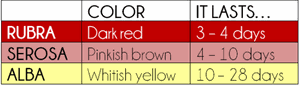 Lochia type and colour with duration