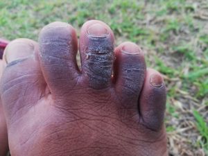 #A 28 years Male client came to my clinic & complaint to me about his skin disease of right legs fingers..he is suffering from last one years, plz diagnose & suggest to me what to do??