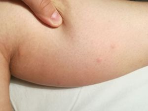 Hi Sanjay,sorry but little bites have alrady been cured , and are now seen only as little red spots, patient now sleeps in different bed, his bedding was washed with hot water, and placed in refrigerator, and after that in oven, his room has been completely hoovered and for a week he will not sleep in there. You can try something like that in your case. In many cases bed bugs have sort of nests so try to find it. I have been looking on my own for similar pictures and some you can find on the internet if you write : bed bugs bites, please contact me if you need anything else.