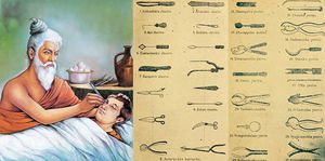 Sushruta, was an ancient Indian physician during 1500 BCE to 1000 BCE, known as the main author of the Suśruta-saṃhitā .He is widely considered as the "father of surgery". The Suśruta-saṃhitā, contains descriptions of 1,120 illnesses, 700 medicinal plants, 64 preparations from mineral sources and 57 preparations based on animal sources. The text discusses surgical techniques of making incisions, probing, extraction of foreign bodies, alkali and thermal cauterization, tooth extraction, excisions, and trocars for draining abscess, draining hydrocele and ascitic fluid, removal of the prostate gland, urethral stricture dilatation, vesicolithotomy, hernia surgery, caesarian section, management of haemorrhoids, fistulae, laparotomy and management of intestinal obstruction, perforated intestines and accidental perforation of the abdomen with protrusion of omentum and the principles of fracture management, viz., traction, manipulation, apposition and stabilization including some measures of rehabilitation and fitting of prosthetic. It enumerates six types of dislocations, twelve varieties of fractures, and classification of the bones and their reaction to the injuries, and gives a classification of eye diseases including cataract surgery.