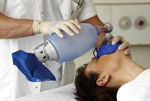 BVM and it's used to provide high-concentration O2 to a pt who requires assisted ventilation or respiratory rate control. Usually used in conjuction with an OPA, if patient can tolerate it.