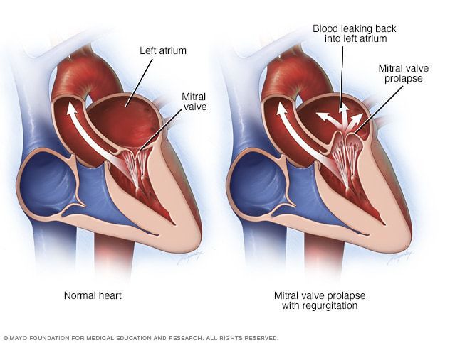 Barlow’s disease is identified by having evident annular dilatation, bileaflet billowing, hooding and/or prolapse and the existence of spongy, thick leaflets caused by extravagant myxomatous tissue proliferation with or without calcification. Barlow’s valve is a form of degenerative mitral valve (MV) disease that is uniquely identified after clinical investigations and is considered a challenging repair for most of the cardiac surgeons. Text Reference: https://www.ncbi.nlm.nih.gov/pmc/articles/PMC3856991/ Image Source: https://www.mayoclinic.org/diseases-conditions/mitral-valve-prolapse/symptoms-causes/syc-20355446#dialogId66658523