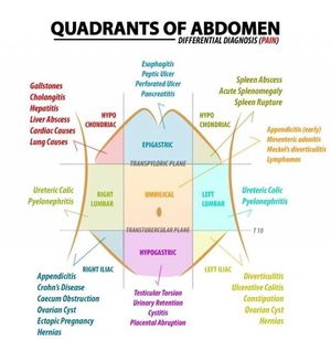 Quadrants of abdomen for differential diagnosis of pain