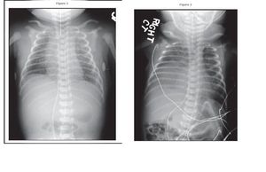 A full-term female infant with a birthweight of 3.5 kg was delivered by caesarean section. Physical examination findings were normal. Four hours after delivery, the infant developed progressively worsening respiratory distress requiring intubation and assisted ventilation. Diagnostic workup confirmed group B Streptococcus (GBS) sepsis and pneumonia. Chest radiography was performed (Figure 1). The infant’s condition gradually improved in the subsequent days and she underwent extubation on the 8th day after birth. However, increasing respiratory distress necessitated assisted ventilation 7 hours later. Chest radiograph obtained after intubation is presented in Figure 2. The findings shown in Figure 2 were unchanged 2 days later. Of the following, the MOST appropriate next step in the care of the infant in the vignette is: A. chest computed tomography B. chest physical therapy C. chest ultrasonography D. fluoroscopy E. thoracentesis