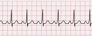 WPW syndrome. See how the starting part of the QRS slants up.