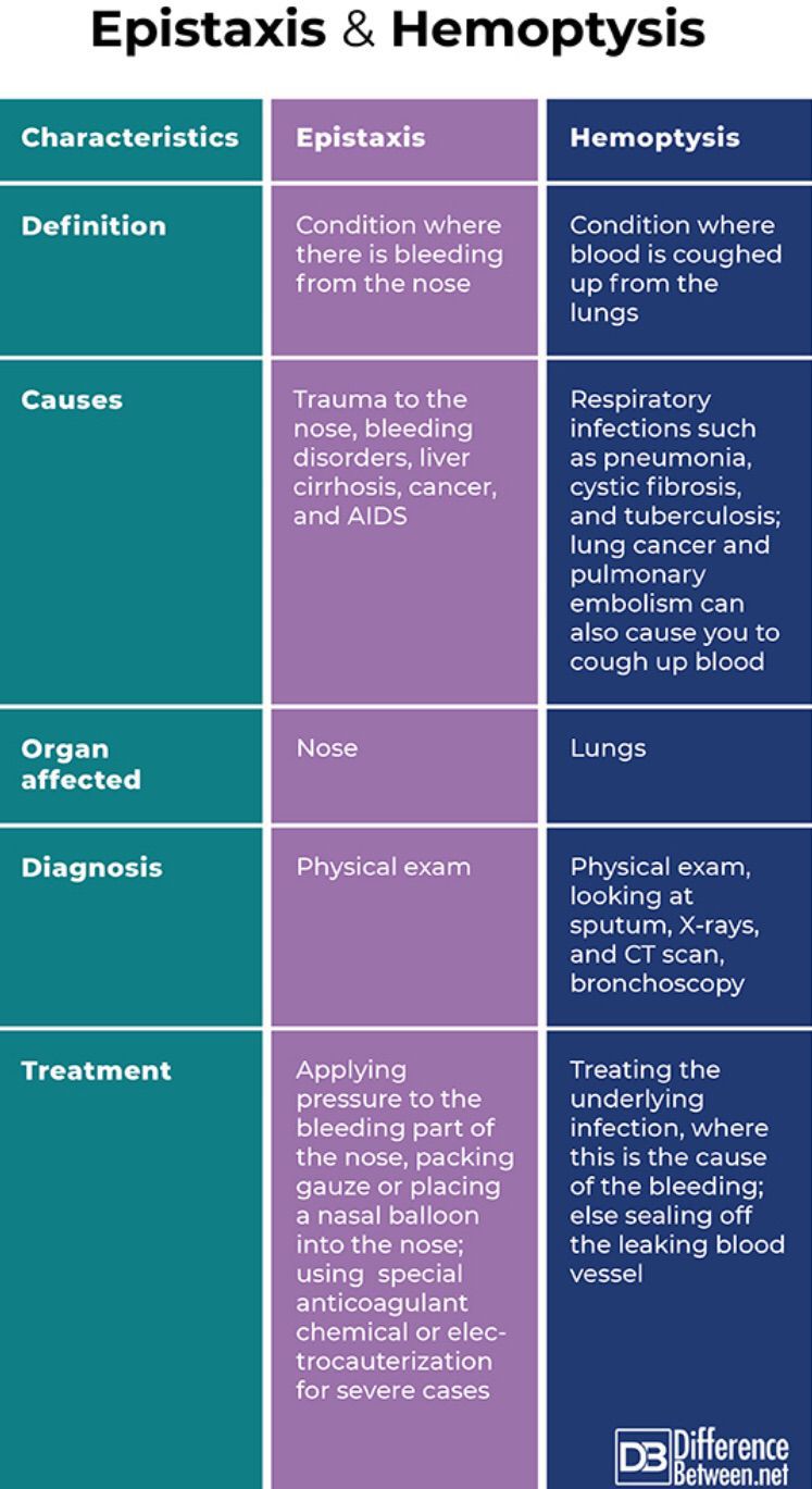 Hi everyone π this is comparing between epistaxis and hemoptysis , check it outπ§