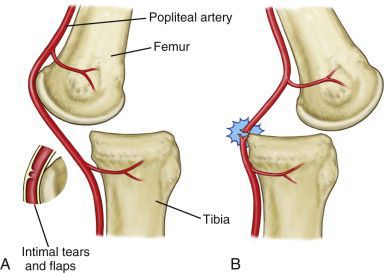 The popliteal artery is the direct continuation of the profunda femoris which runs in the popliteal fossa behind the knee joint. Being the deepest structure of the popliteal fossa, it lies in close proximity to the knee joint and is prone to damage in a knee dislocation injury. Damage to this artery deprives the lower limb of its principle source of blood supply and can have serious consequences if not repaired in time. A duplex ultrasound or CT angiography may be performed to confirm the presence of vascular injury. If addressed and repaired within 6hrs, the limb salvage rate is good but beyond that, amputation may result. Source: https://musculoskeletalkey.com/vascular-problems-of-the-knee/
