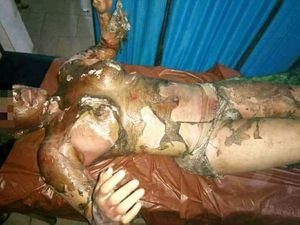 Dan Falke, If you read my comment carefully you'll realize i covered the basics (my comment is in order of A,B,C ,all the way to consult). Your notion of "treat the pt not a textbook" and "keep it simple " can't practically co-exist. I commented about long term measures like antacids ,debridment etc for learning purposes. I would've thought to intubate first instead of nasal 10L O2 but on this single image facial and neck burns don't look severe,i see skin sloughing off &alot of soot but no depth to the burns.