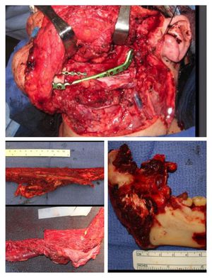 Placement of the fibula free flap and anastomoses of the peroneal artery to the facial artery and peroneal vein to the external jugular vein Post op heme-oncology evaluation