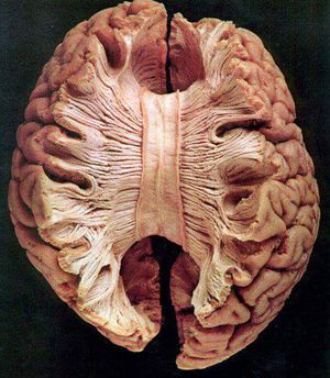 The large band of neural fibres connecting the two brains hemispheres and carrying messages between them.