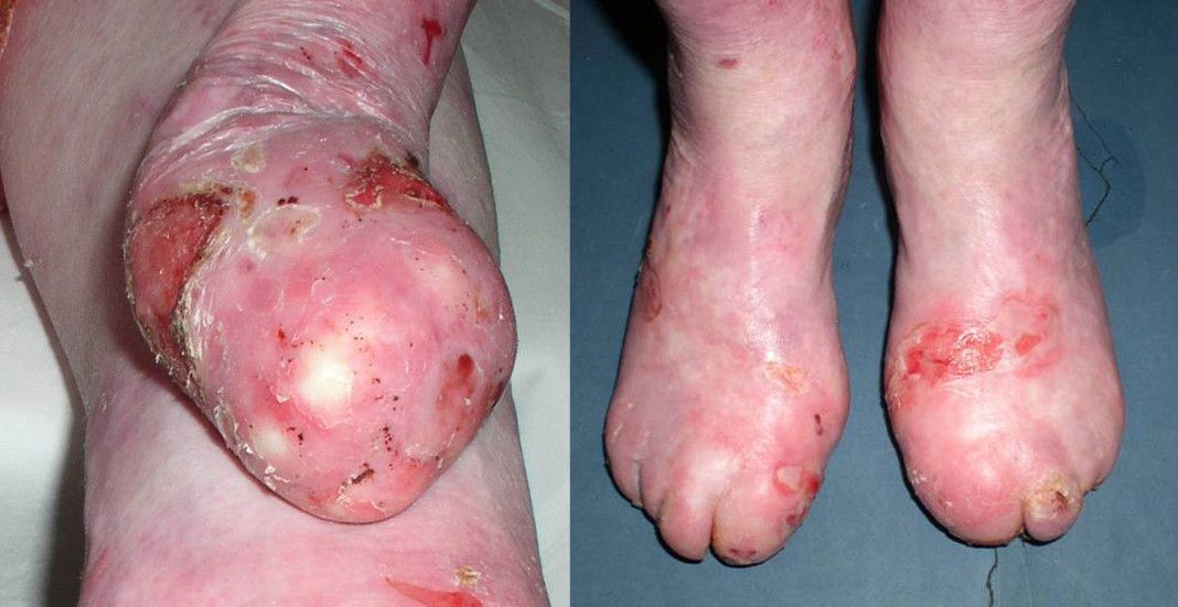 Generalized recessive dystrophic epidermolysis bullosa represents one of the more debilitating forms of epidermolysis bullosa. It is characterized by generalized cutaneous and mucosal blistering with even minor trauma. Secondary infections are often a problem because of the large surface areas that may be involved. The hands and feet function is often greatly diminished because of the repeated episodes of cutaneous breakdown and healing with scarring, resulting in fusion of the fingers into a mittenlike deformity as shown. The oral problems are no less severe. Bulla and vesicle formation is induced by virtually any food having some degree of texture. Even with a soft diet, the repeated cycles of scarring often result in microstomia and ankyloglossia may occur. credits: Brad W. Neville, Douglas D. Damm, Carl M. Allen, Angela C. Chi - Oral and Maxillofacial Pathology-Saunders (2015) https://images.app.goo.gl/9deFZxvJy8PbgeXR7