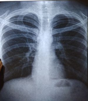 22 yr male presents with non productive cough which aggregated during night since 5 days, foreign body sensation in throat since 2 days..he is not allergic to any thing..x-ray done..what is your diagnosis??