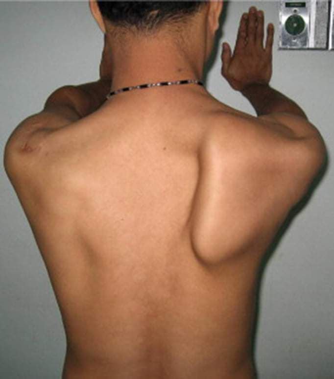 Isn’t Poland syndrome congenital absence of the pectoral muscle? This looks like winged scapula.