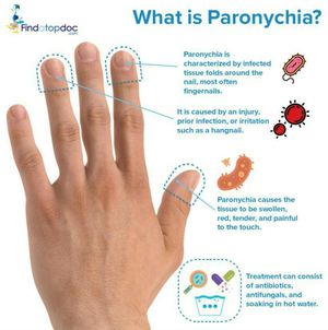 In addition the picture, staphylococcus aureus causes acute paronychia leading to swallow and sever pain but in chronic form candida is agent and there is pain but not severe. There is a layer named cuticle that is waxy and hard and protect the skin.somebody washing there hand alot make it destroyed that is a predisposing factor for paronychia.