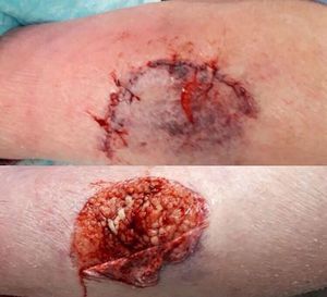 An elderly woman slipped and fell leaving this large gash on her arm!