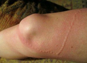 Symptoms include an intense, stinging pain, itching, rash, and raised welts. The progressive effects of ... may include nausea, vomiting, diarrhea, lymph node swelling,abdominal pain,numbness/tingling, andmuscle spasms. Severe reactions can cause difficulty breathing, coma, and death.