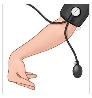Trousseau's sign. Trousseau's sign is the induction of carpopedal spasm by inflation of a sphygmomanometer above systolic blood pressure for three minutes. Carpopedal spasm, as indicated above, is characterized by adduction of the thumb, flexion of the metacarpophalangeal joints, extension of the interphalangeal joints, and flexion of the wrist. It may also be induced by voluntary hyperventilation for one to two minutes after release of the cuff. Trousseau's sign depends upon the effect of ischemia to increase excitability of the nerve trunk under the cuff, rather than at the motor endplate; excitability is maximal at three minutes and returns to normal even if ischemia is maintained for a longer period.
