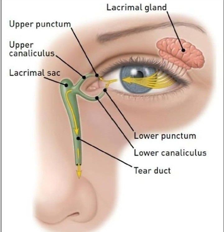 Lacrimal gland is a bilobed, tear-shape gland with a primary function of secreting the aqueous portion of the tear film thereby maintaining the occular film. The lacrimal gland is located within the orbit above the lateral end of the eye. It continuously releases the fluid which clean the eye surface, protect, lubricate, moisten it. These lacrimal secretions are commonly known as tears.